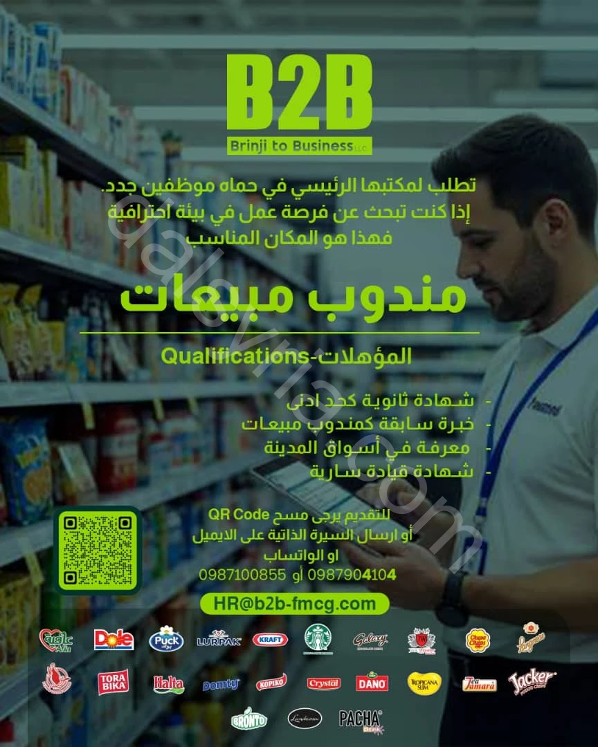 مطلوب مندوب مبيعات ميداني و موظف حدمة عملاء